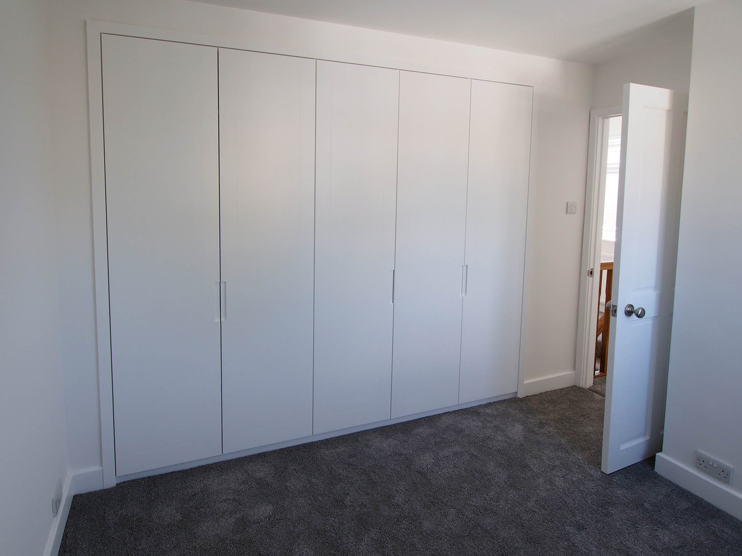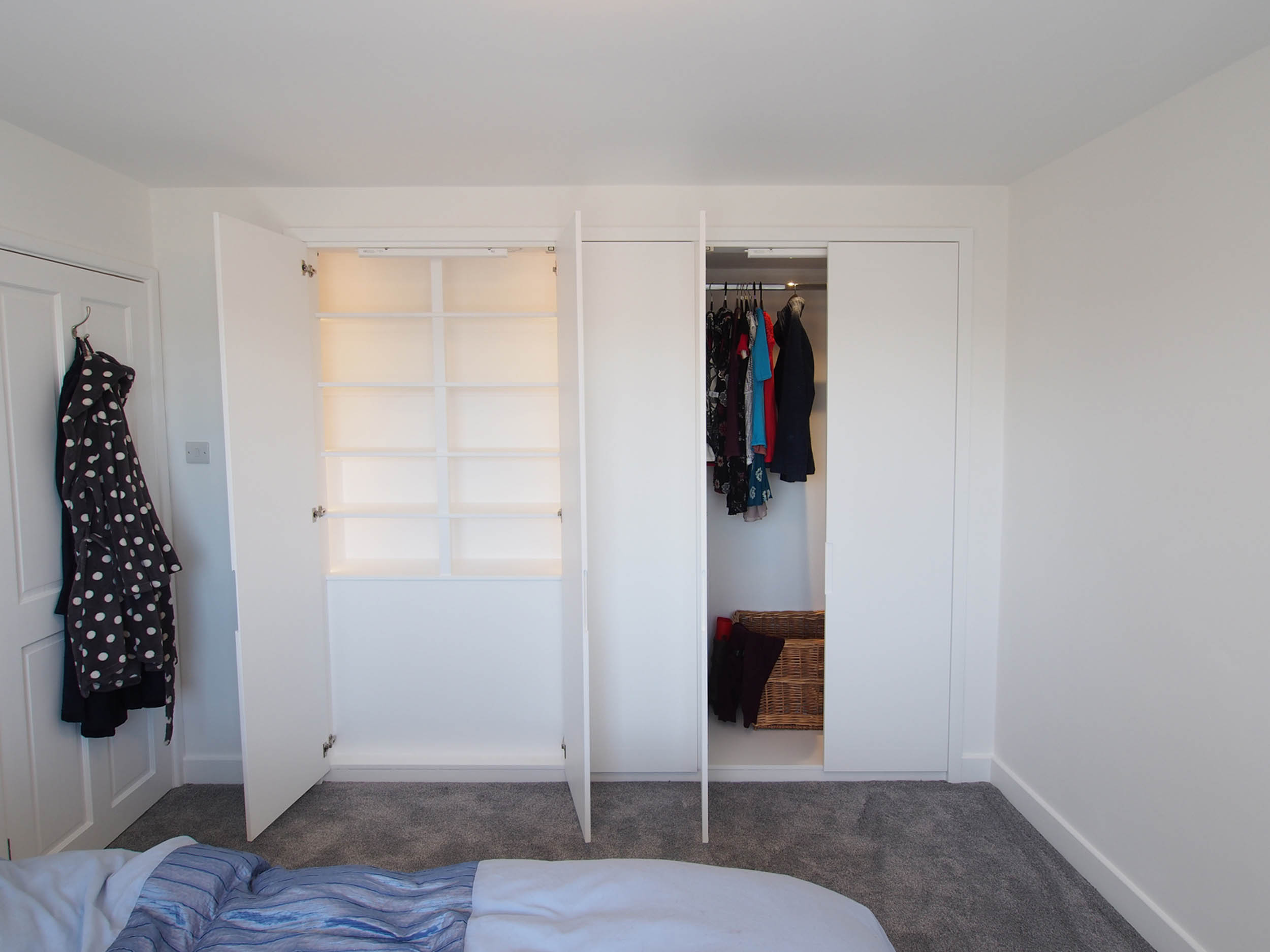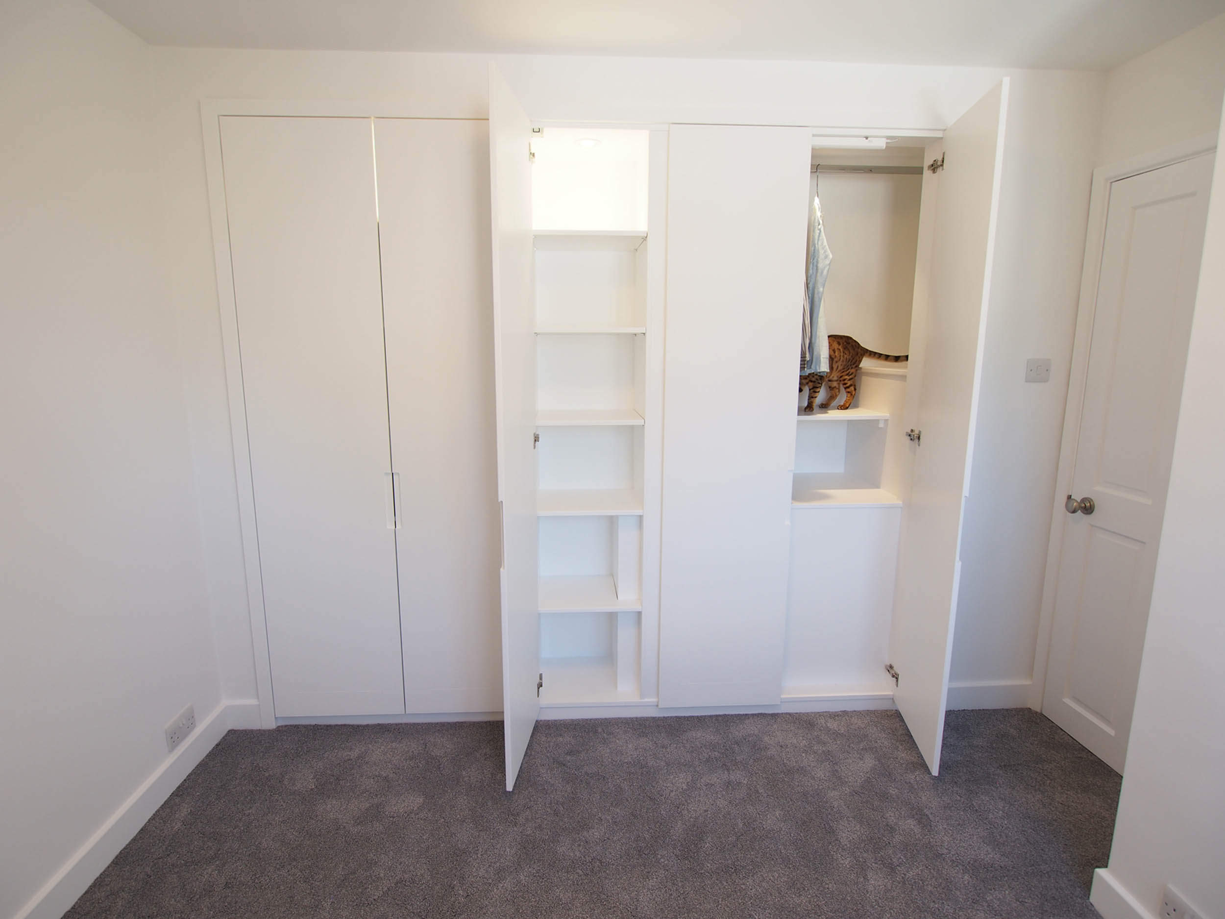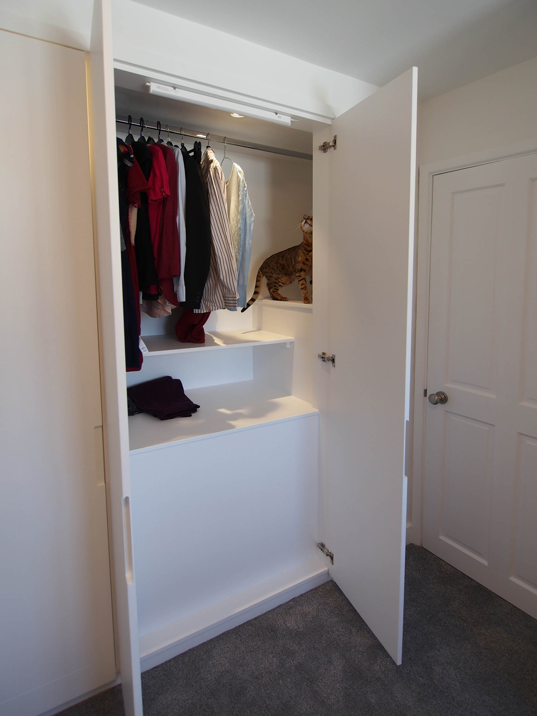 The first floor of this 1960s house in Bath was gutted and modernised with some nice details. Probably the most complicated head-scratcher of a wardrobe build we’ve ever done!