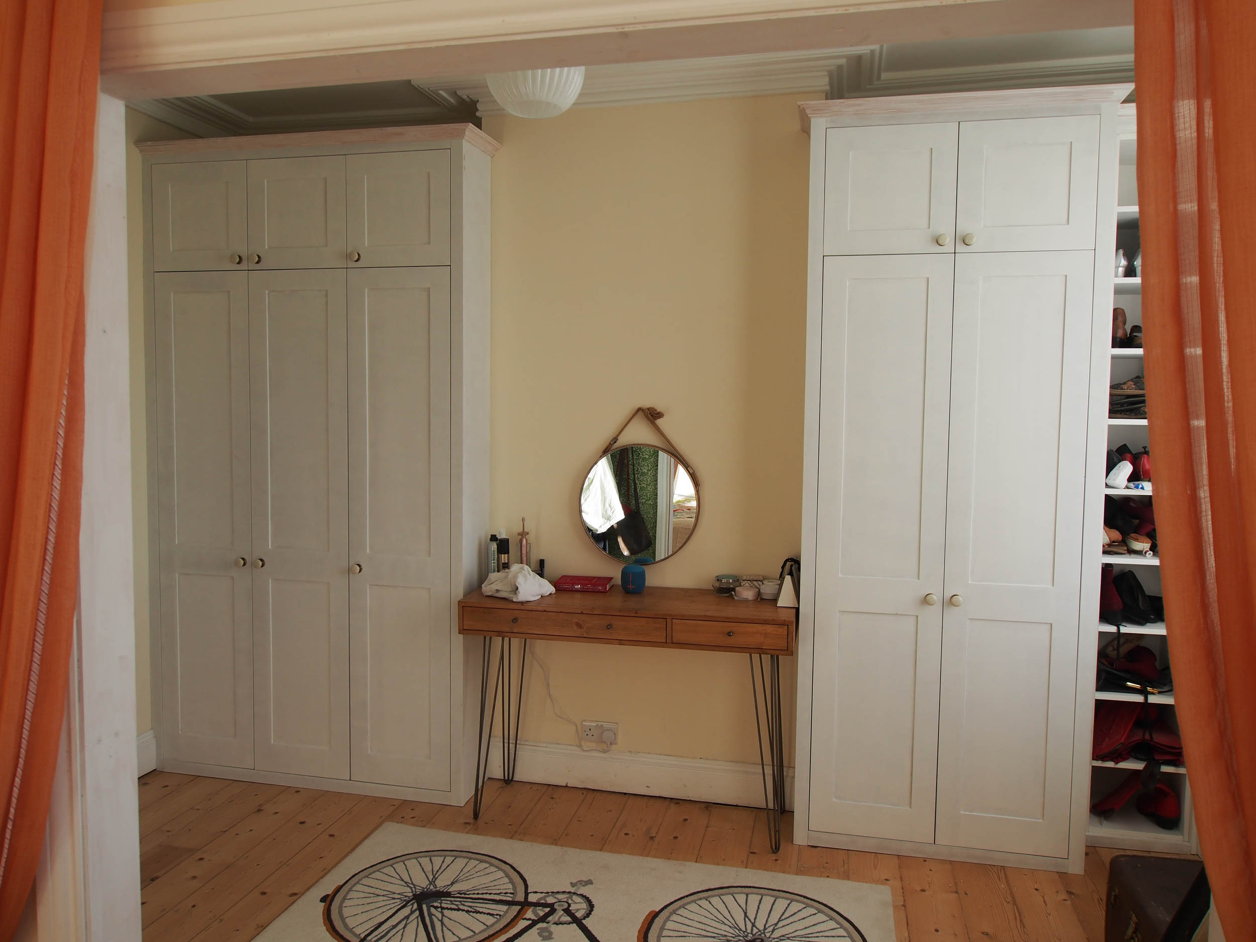 The adjoining small bedroom to the Master bedroom was converted to a dressing room for the master bedroom, with the addition of bespoke fitted wardrobes.